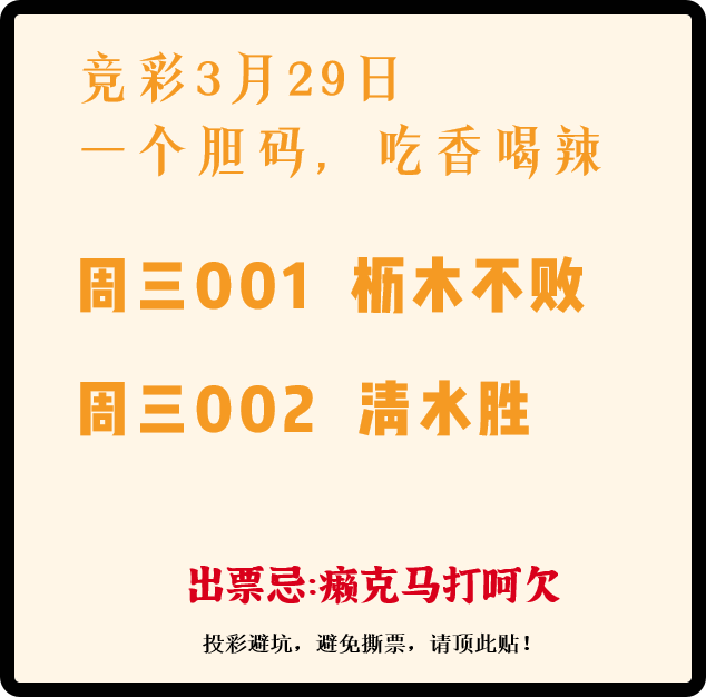 竞彩3月29日 一个胆码,吃香喝辣