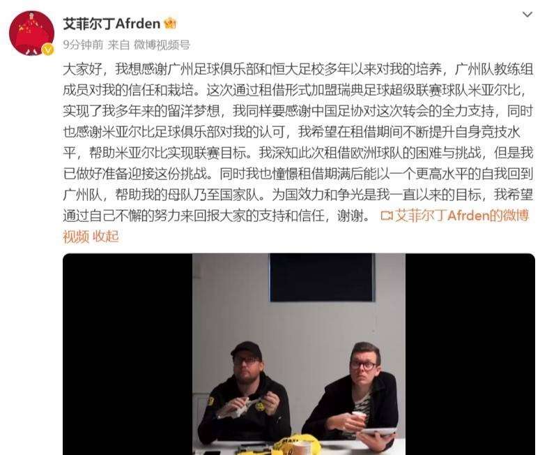 艾菲尔丁谈留洋:感谢足协的全力支持 已准备好接受挑战