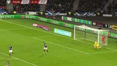 博尔哈躲在球门内试图偷袭断球 遭苏格兰门将识破
