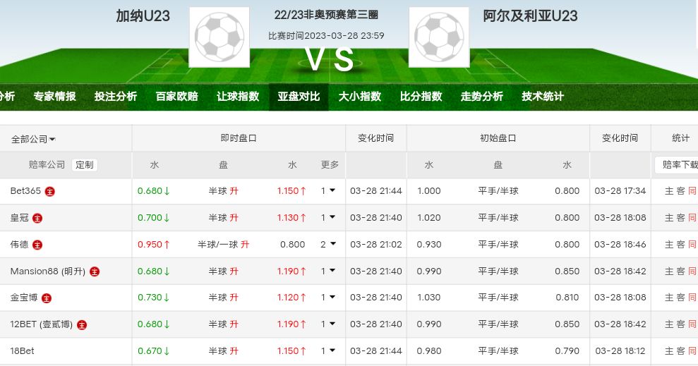 加纳升盘降水,看着像诱,但是盘口实际上力度很足,阿尔及利亚形象也