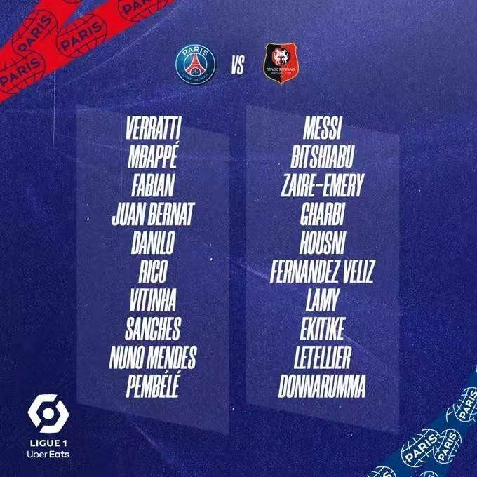 巴黎公布对阵雷恩大名单:梅西领衔 多名防线主力缺席