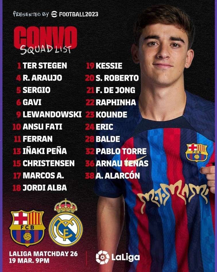 巴萨公布国家德比大名单:莱万领衔 佩德里、登贝莱伤缺